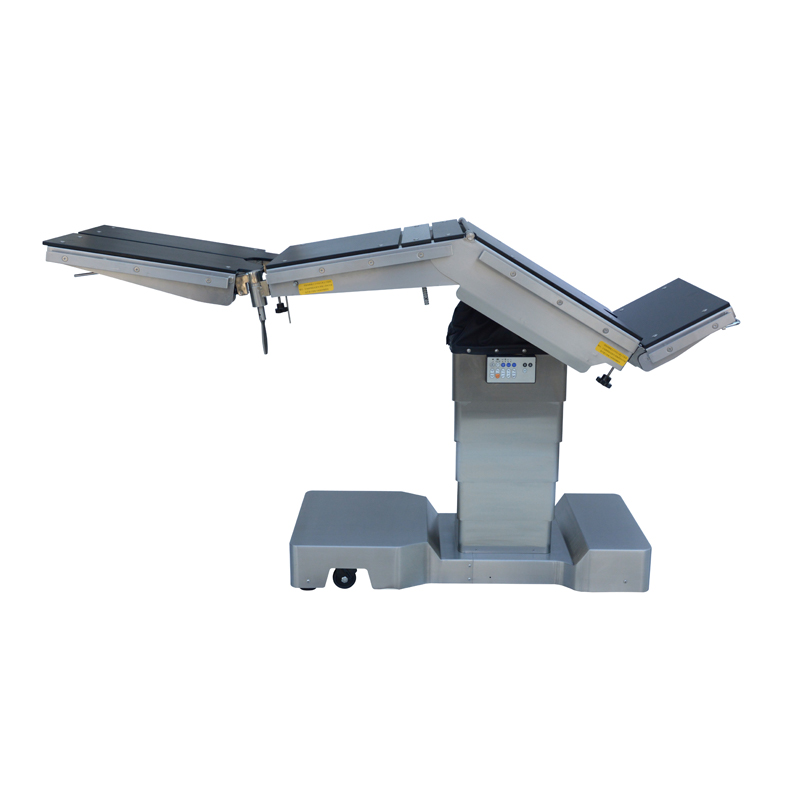 Dit product is geschikt voor het uitvoeren van hoofd-, nek-, borst-, buikholte-, perineum- en ledemaatoperaties in operatiekamers van ziekenhuizen, maar ook voor verloskunde en gynaecologie, oogheelkunde, otolaryngologie, orthopedie en andere operaties. Het heffen, naar voren en naar achteren kantelen, naar links en naar rechts kantelen, het inklappen van het achterbord en de longitudinale beweging van het tafelblad worden bereikt door een elektrisch hydraulisch systeem, dat flexibel en eenvoudig te bedienen is. Het tafelpaneel is gemaakt van hoogwaardig synthetisch karton en kan worden gebruikt in combinatie met C-vormige armen.